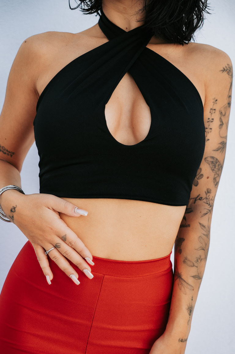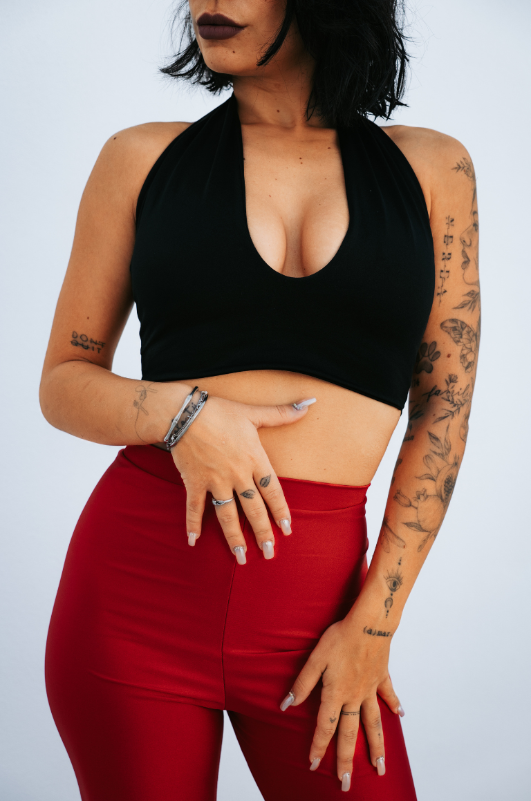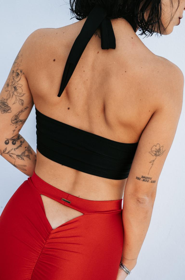 El Top Lidia está diseñado con doble tela en el pecho para mayor sujeción y comodidad.